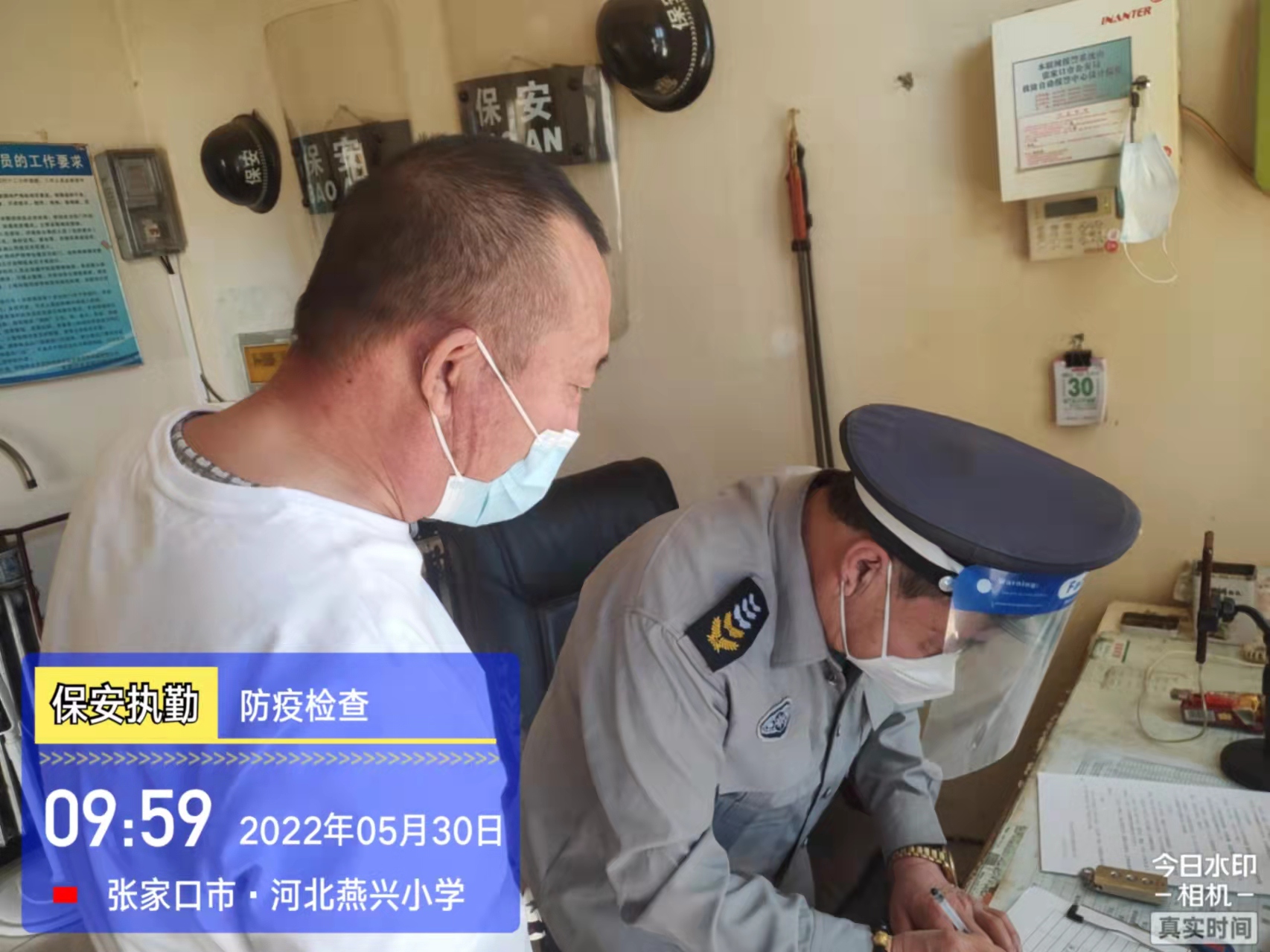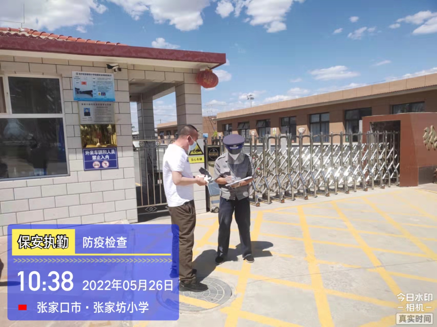 會后,我公司迅速召開“疫情期間學(xué)校門衛(wèi)安全防控工作要求”的會議,制定了校園安全防疫規(guī)定:疫情防控期間,校園保安隊員必須穿制服,規(guī)范佩戴“三件套”(防護隔離面罩、N95口罩、一次性PVC手套);進出校園的師生必須測量體溫,外來人員需登記、測溫、掃碼(幸福張家口,呈綠碼)、且持7日內(nèi)核酸陰性檢測結(jié)果;保安室需保持干凈整潔,物品擺放有序,勤開窗通風(fēng),定期噴灑消毒藥水。為此,公司特成立校園防疫檢查小組,由副經(jīng)理帶隊,協(xié)同主管大隊長對經(jīng)開區(qū)所有中小學(xué)校安保崗位進行防疫工作檢查,檢查期間,發(fā)現(xiàn)問題,現(xiàn)場處理,并及時與校方領(lǐng)導(dǎo)溝通,杜絕同樣問題再次出現(xiàn),確保校園防疫安保工作萬無一失,為各校師生鑄就一道安全防線!